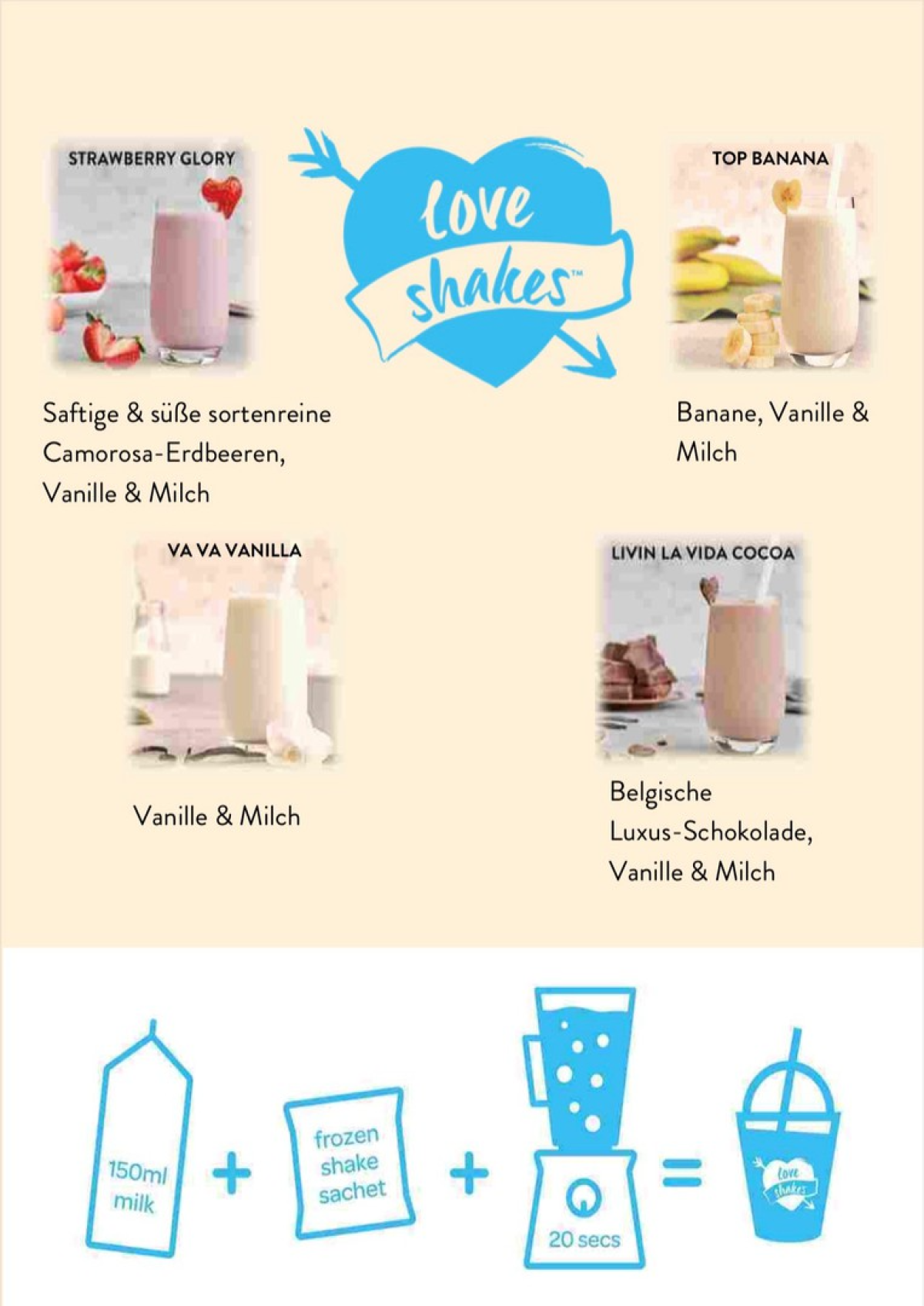 Lovetaste Smoothies sind mega-trendy, gesund, lukrativ. Das "Made Easy" Konzept; Portionssachet direkt aus dem Gefrierschrank nehmen und fertig in nur 30 Sekunden mit 200ml Apfelsaft gemixt.